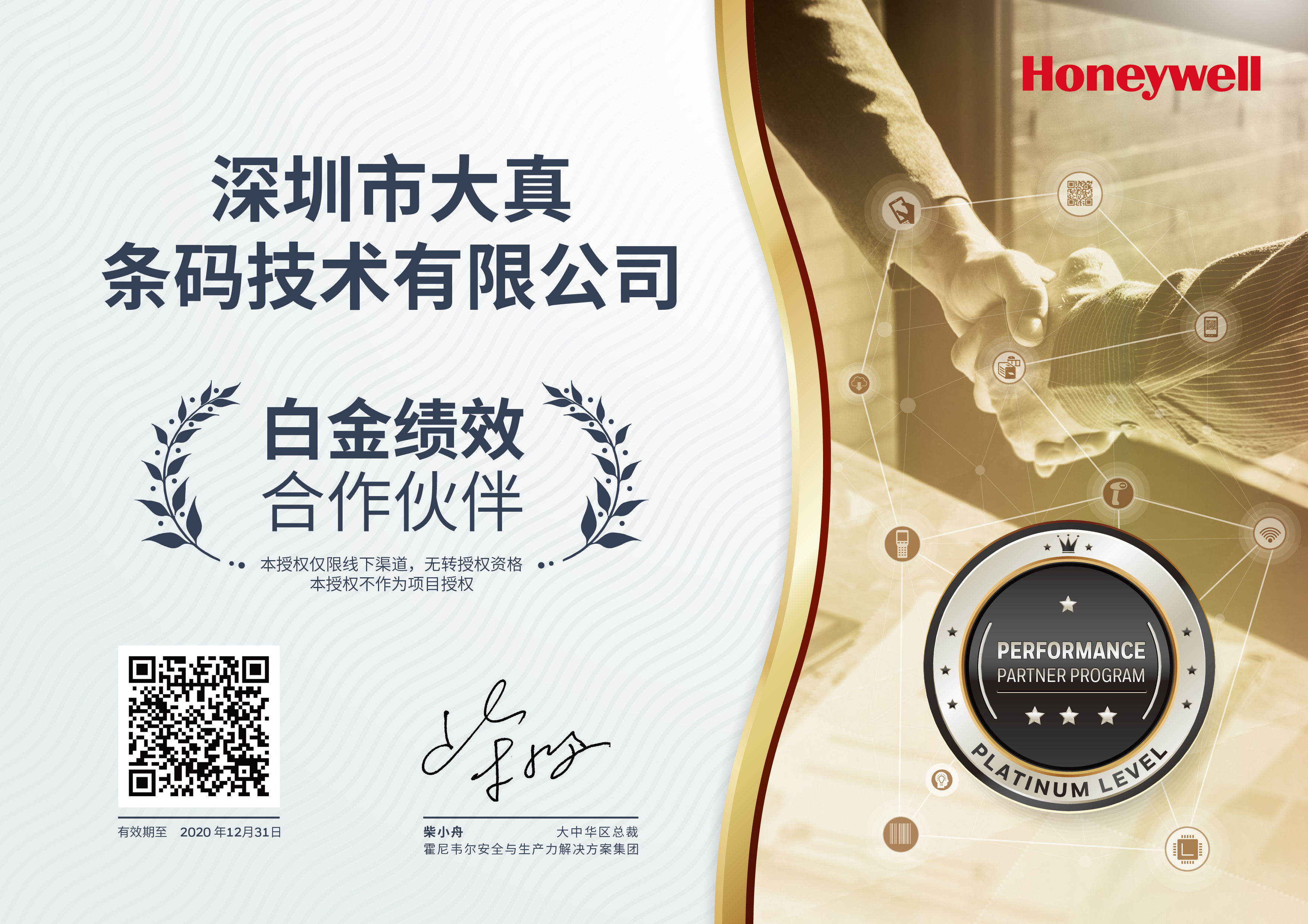 2020年霍尼韦尔代理证书