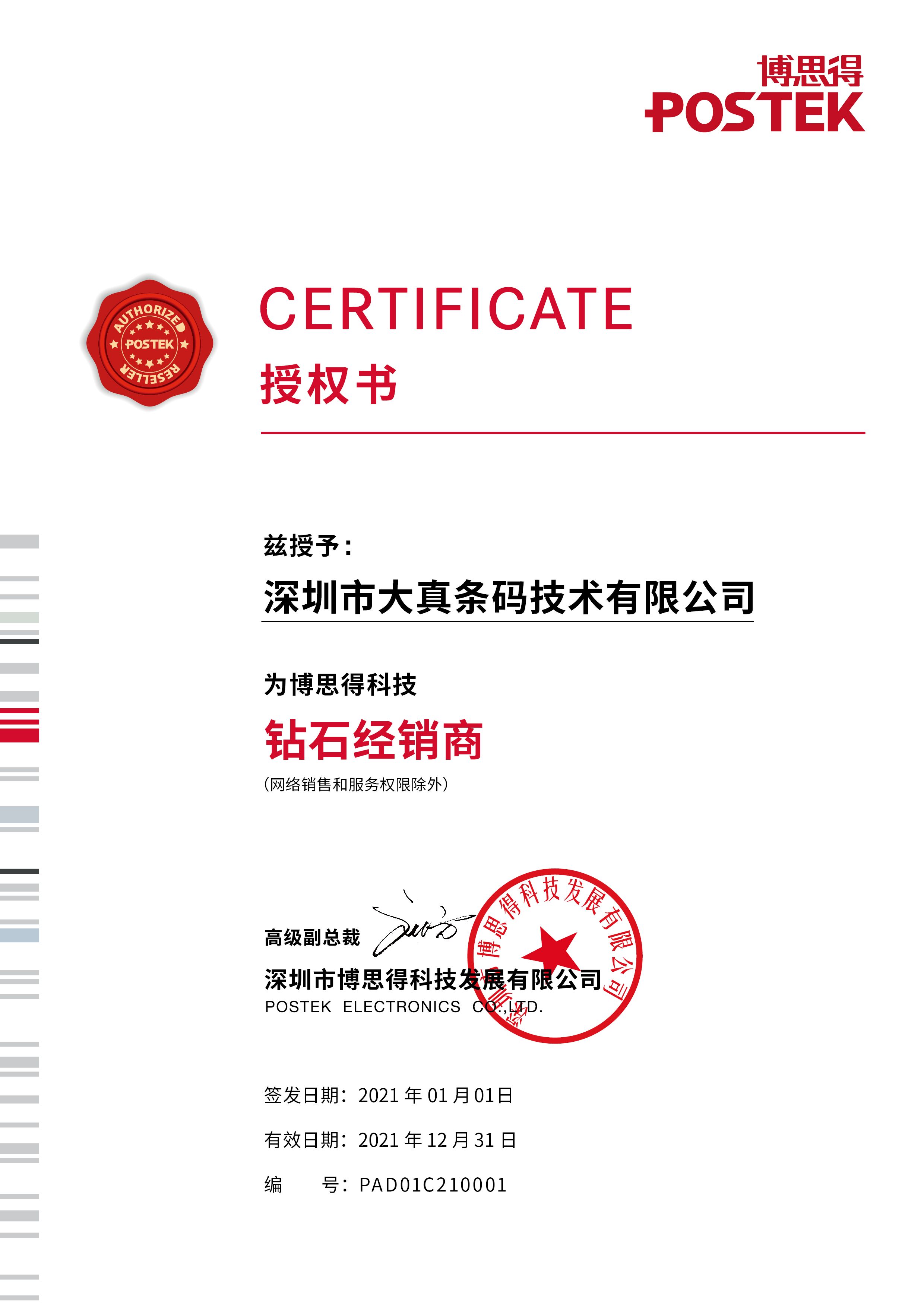 2020年得利捷代理证书
