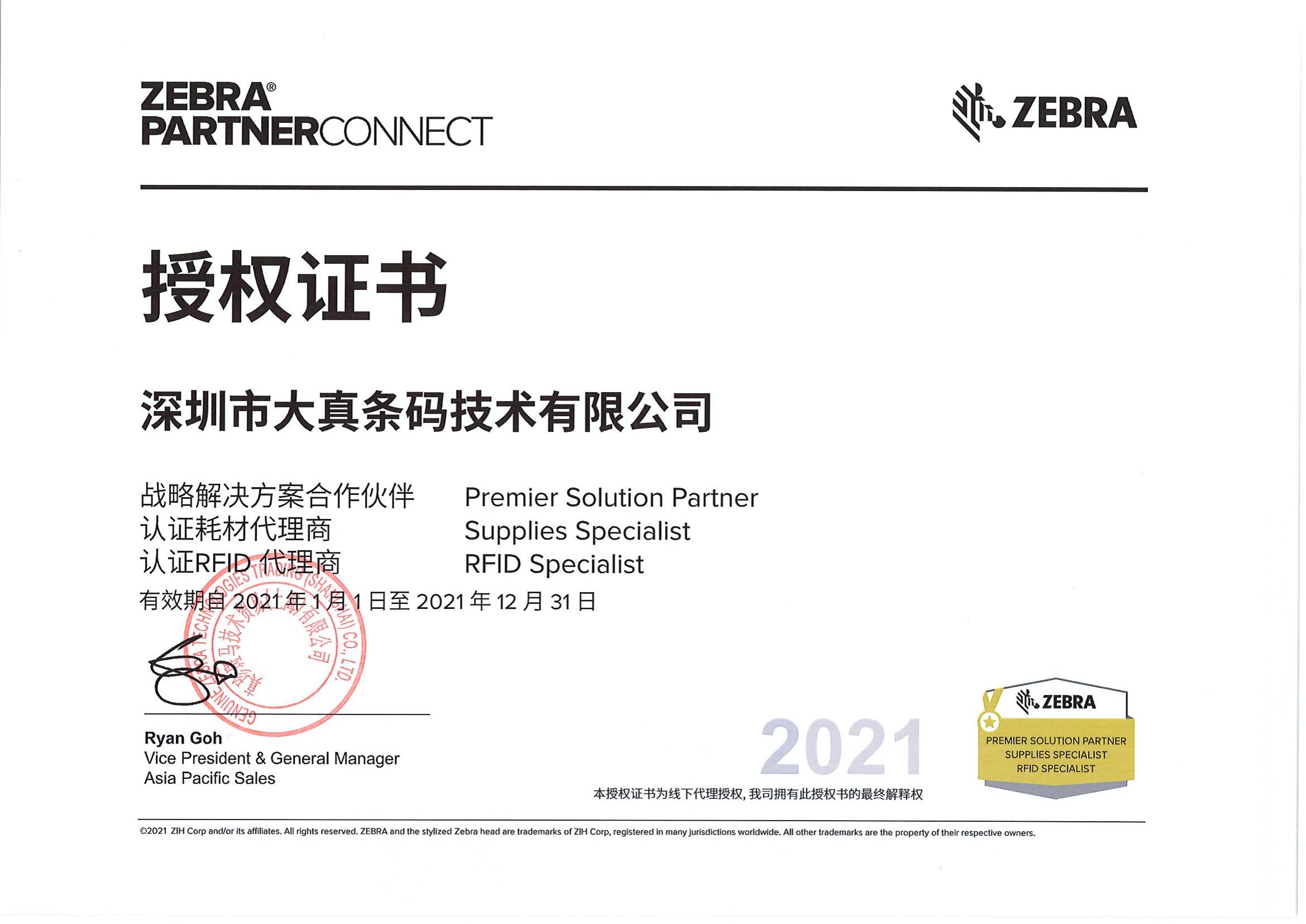 2021年斑马代理证书