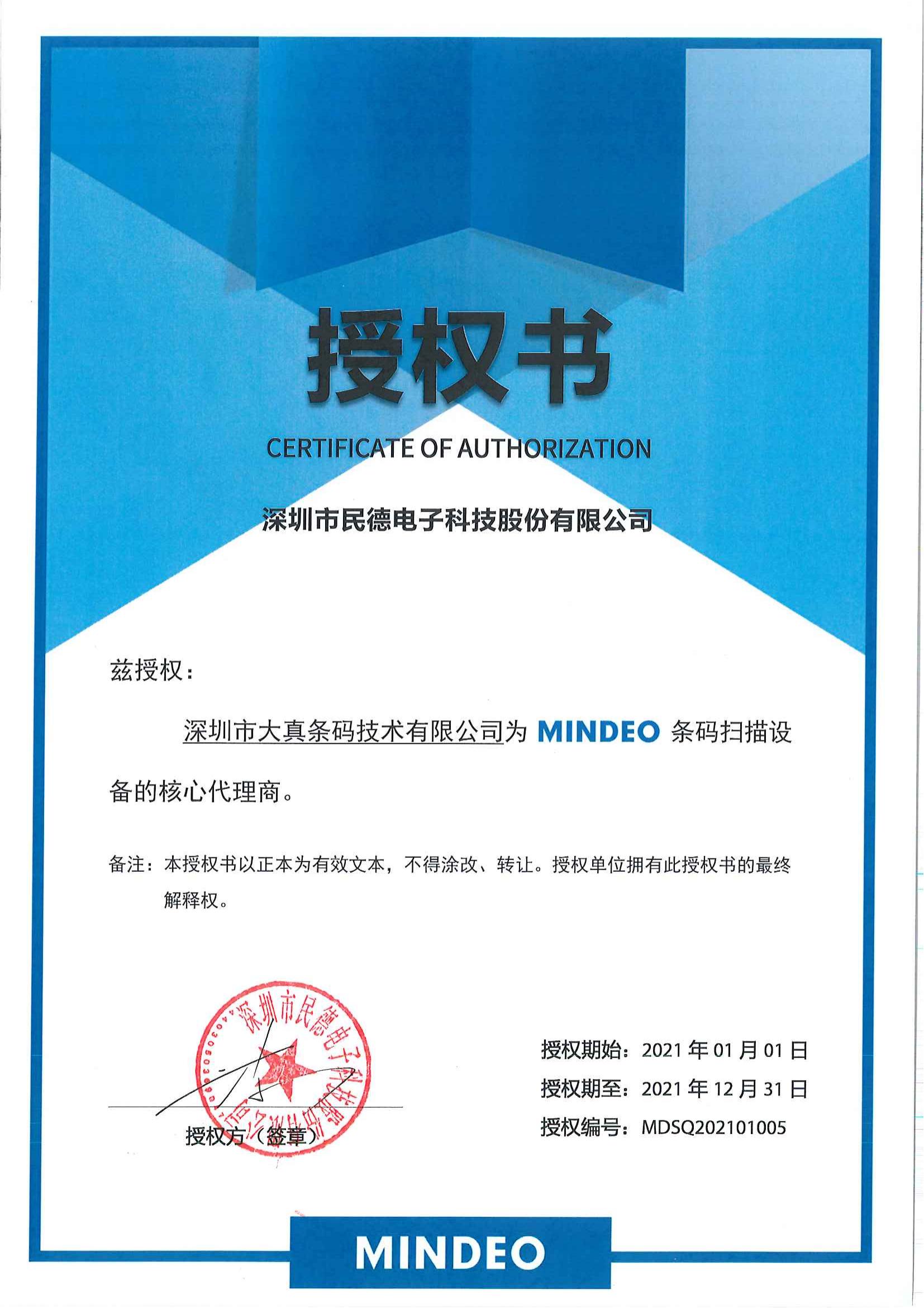 Mindeo(民德) 授权