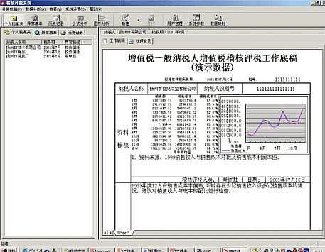 本公司开发的稽核评税系统针对现行税务征管模式"以纳税申报和优化服务为基础,以计算机网络为依托,集中征收,重点稽查",为实施科学选案,提高稽查效果。该系统对纳税人纳税申报资料进行事后及时评定、分析,发现纳税申报异常现象并及时处理,实现对纳税人的实时控制。
