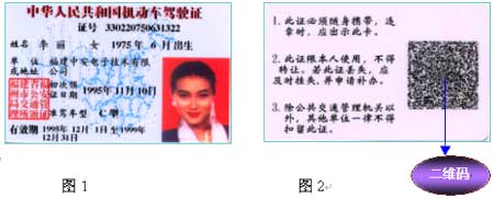 1. 行车证驾驶证管理 行车证是公安部门制作的带有法律意义的车辆证明文件,其中的信息是经过车辆管理部门审定,具有法律保证作用。采用印制有二维码行车证,将有关车辆上的基本信息,包括车驾号、发动机号、车型、颜色等车辆的基本信息转化保存在二维码中,其信息的隐含性起到防伪的作用,信息的数字化便于与管理部门的管理网络的实施实时监控。(如图1、图2)