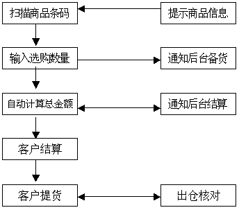 服务形式:由导购人员携带无线终端,帮助客户选购商品,记录客户选中的商品名称和数量,实时传送至后台处理系统帮助客户备货。客户完成商品选购后,可以直接到后台结算,然后直接提货或要求送货上门。