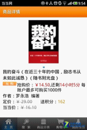 当当网手机客户端同网页一样,包含网购所必需的商品搜索、浏览、购买等功能,数万种商品,与网站相比一个都不能少,而且移动网购的便利性使得我们不再必须找台电脑下单付款,用手机一样能随时随地搜索浏览商品、收藏或购买。