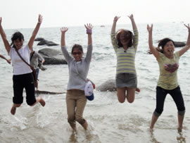 11月7日和8日根据行程安排,我们先后游览了亚龙湾热带天堂森林公园、亚龙湾沙滩、蜈支洲岛、鹿回头风情园、天涯海角等风景区。十一月的三亚依然绿意盎然,暖风袭人,这里山峦翠绿,碧波环抱,椰树掩映,阳光、沙滩、海水、空气、森林、南国风情和田园得天独厚,山、城、沙、海、港自然地结合在一起,呈现着一派旖旎的热带海滨风光,形成了奇特的景观和四季如春的迷人画卷。大家亲身体验了宜人的海边生活,潜入了神奇的海底世界,目睹了浩瀚的碧海蓝天,领略了当地少数民族的风土人情,尽情品尝了各种海产品,各种热带海滨风光深深映入了大家的脑海。在11月7日晚上我们还安排了09年度优秀员工和优秀团队颁奖活动,这次我们别开生面地选择了在KTV房颁奖,在颁奖之余大家可以尽情K歌和开怀畅饮,极其乐甚。